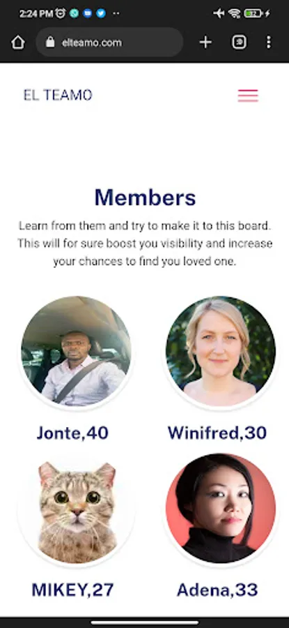 El TEAMO is a dating platform that provides dating services to men/women who are interested in finding beautiful women and serious able men who can offer love, peace of mind, and sexual satisfaction.