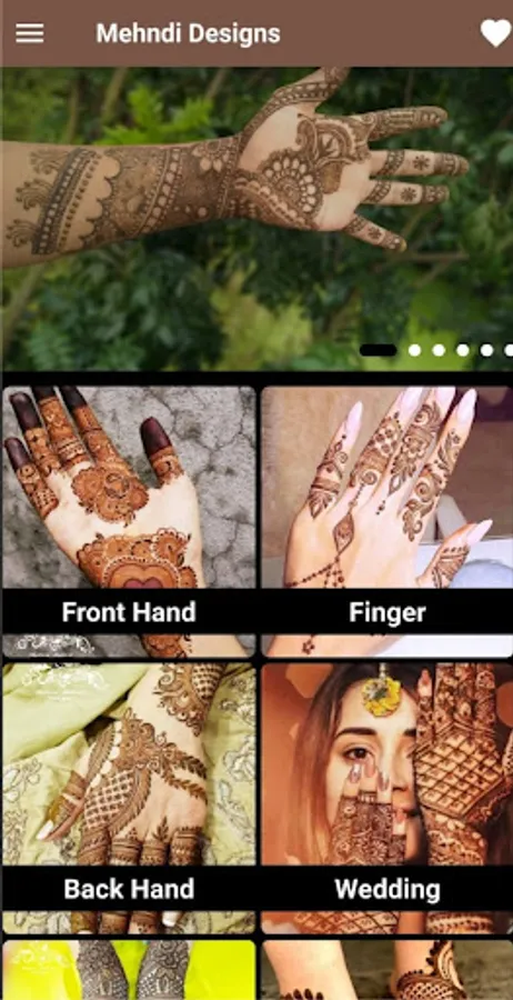 This app have many new mendi desings these henna designs can be used as mehndi designs for eid and wedding. Modern mehndi design is unique and simple henna design application to help those females who don't know latest and latest trending mehndi designs. The mehndi design in this app is high quality and hd new mehndi images. This mehndi app have collect all arabic mehndi design or latest Indian mehndi design and and foot mehndi design.