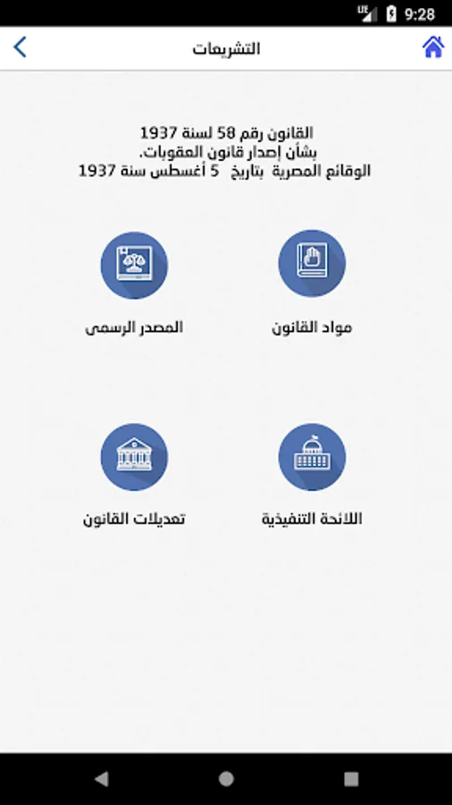 محتويات تطبيق العدالة اندرويد