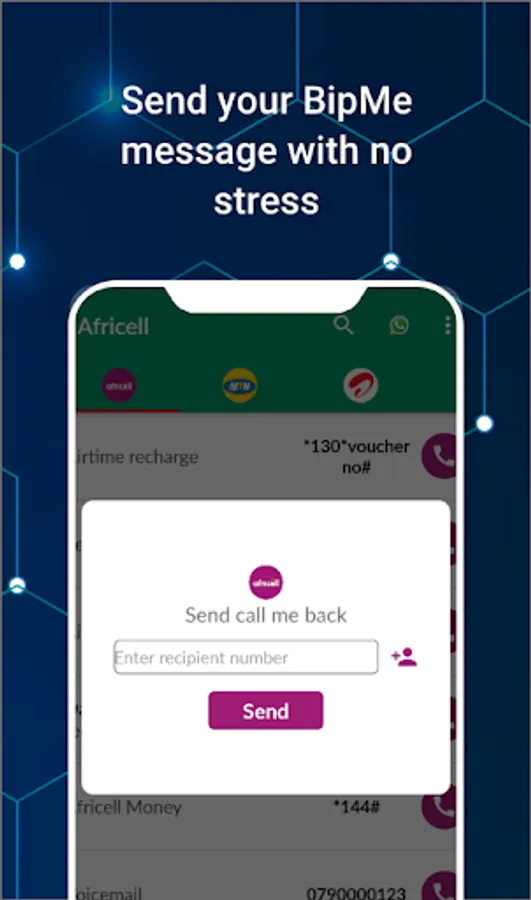 One very amazing feature about this app is that you don't need to memorize the recipient's phone number when you want to send a call me back message. All you need to do is click on the add(+) contact icon and pick the phone number from your contacts list then click on 'Send' and that's it.
