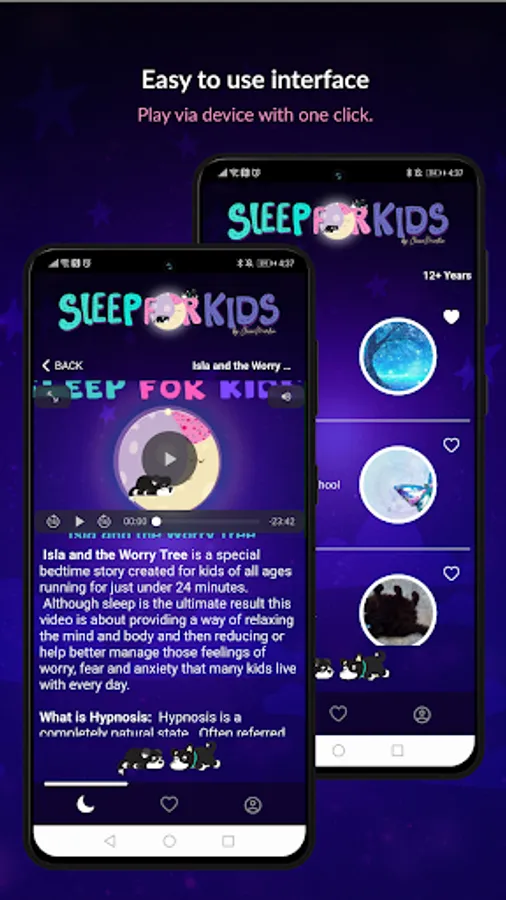 These kids bedtime stories work by including subtle embedded suggestions within the story and they works beautifully to help children move into a calm, peaceful and relaxed sleep. This is truly an app that helps you sleep..
