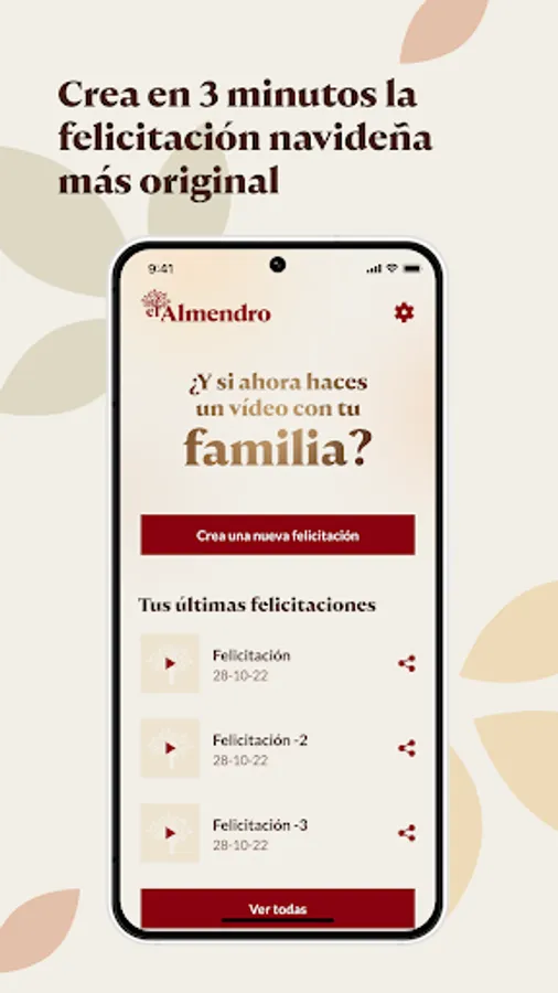 With the application of El Almendro you can make a Christmas greeting with your memories. You will create a 100% personalized video with the most endearing images. Also, you can share it with your loved ones!