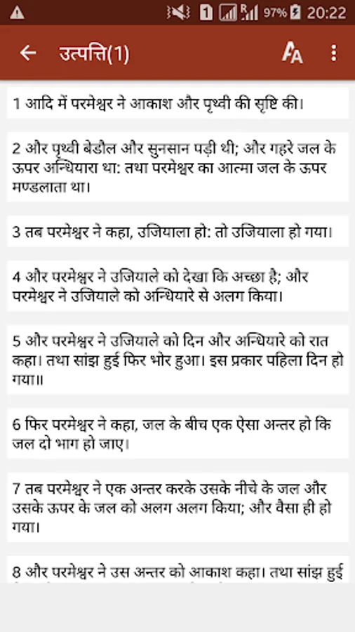 As a praise to the Lord, we are happy to bring this offline Hindi Holy Bible app for Android devices. The app works in offline mode, it contains complete 'Old Testament' and 'New Testament' in Hindi. The app displays 'Bible verse' by notification on a daily basis .