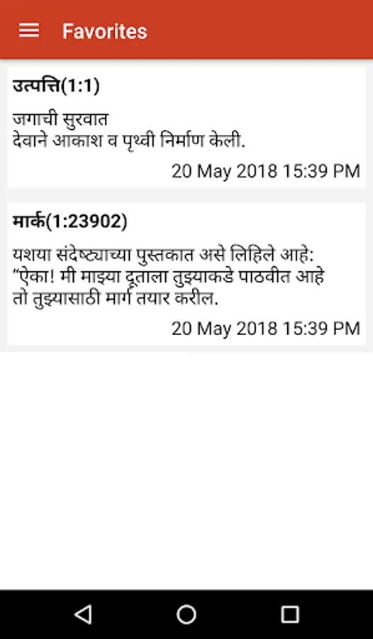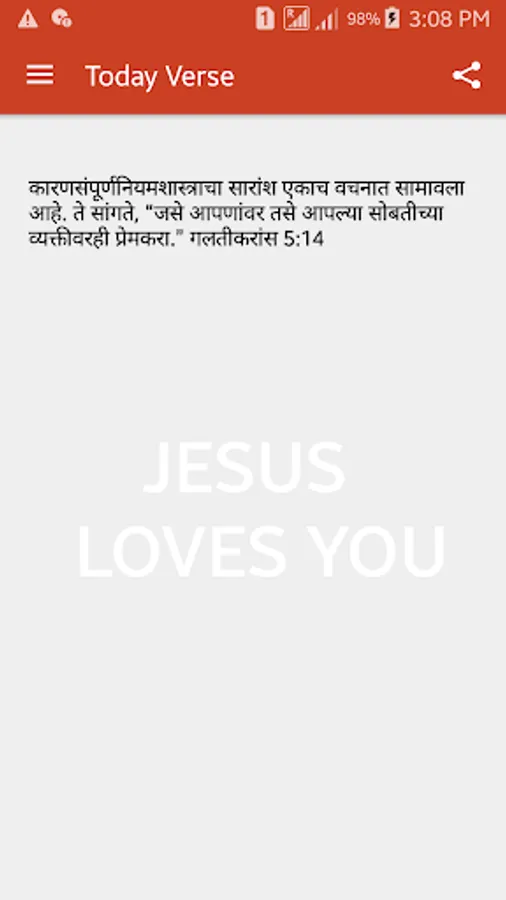 As a praise to the Lord, we are happy to bring this offline Marathi Holy Bible app for Android devices. The app works in offline mode, it contains complete 'Old Testament' and 'New Testament' in Marathi. The app displays 'Bible verse' by notification on a daily basis .
