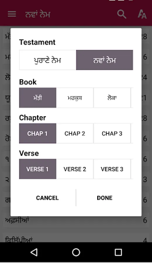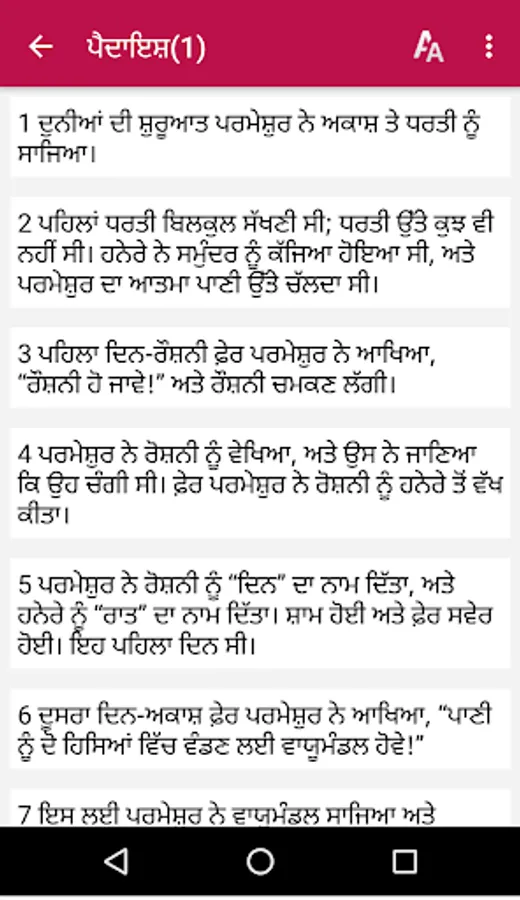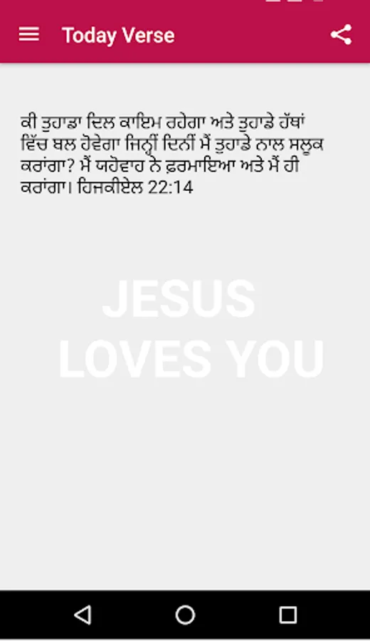 As a praise to the Lord, we are happy to bring this offline Punjabi Holy Bible app for Android devices. The app works in offline mode, it contains complete 'Old Testament' and 'New Testament' in Punjabi. The app displays 'Bible verse' by notification on a daily basis .