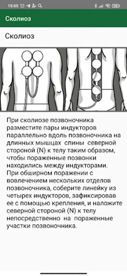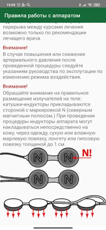 The application is a planner of physiotherapy procedures performed using the Almag + apparatus. Contains information about the products of the Elamed company, magnetotherapy and its properties, as well as diseases that can be treated with magnetotherapy.