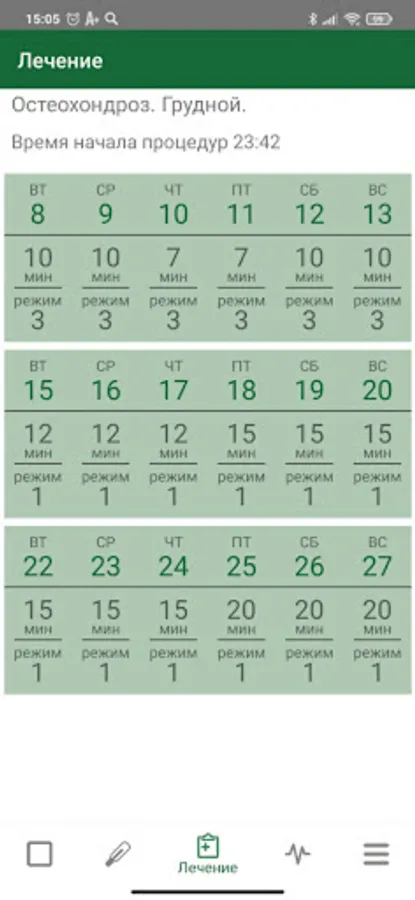 Based on the selected disease, the application automatically builds the required schedule and time for the procedures. The app creates reminders before each procedure.