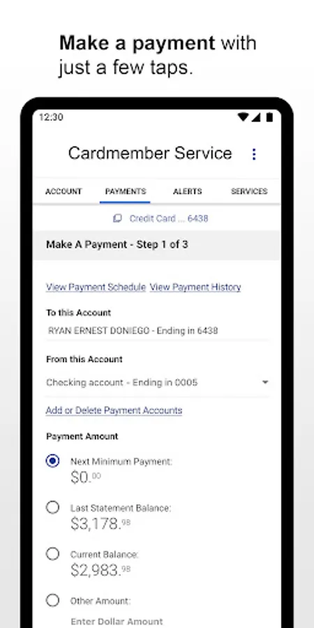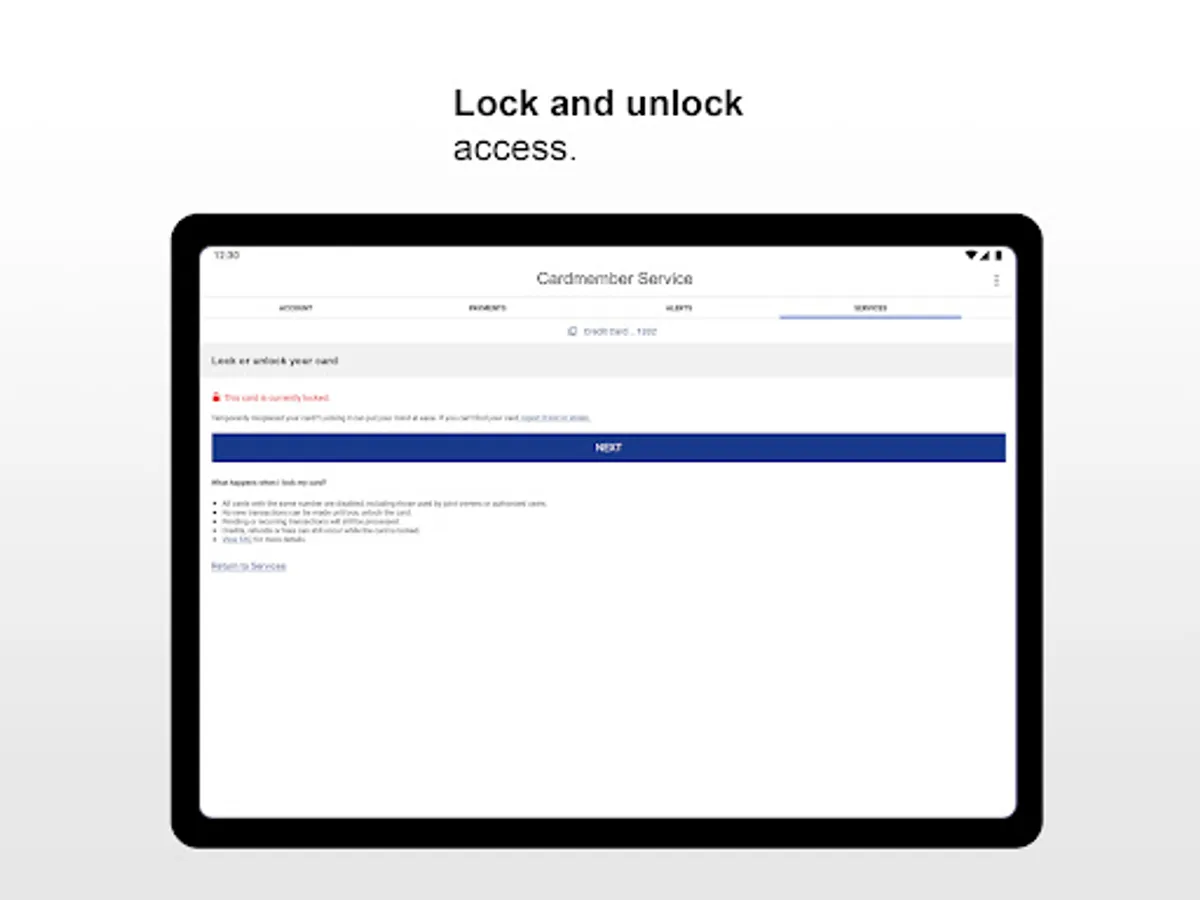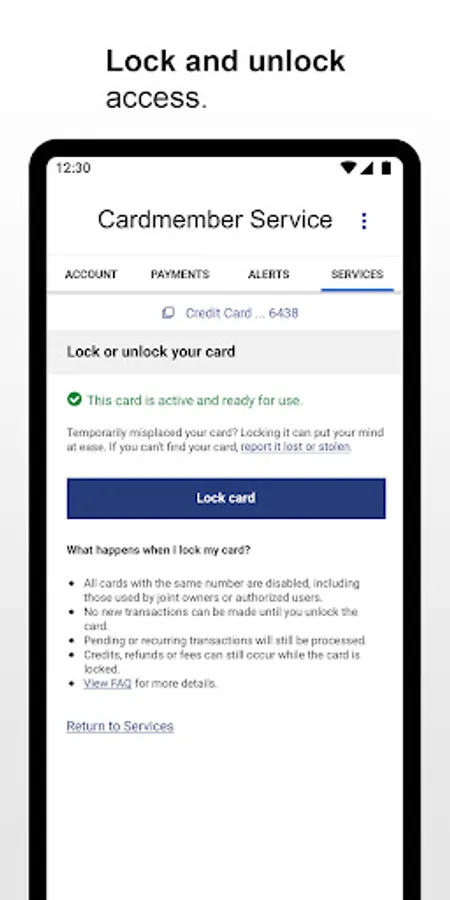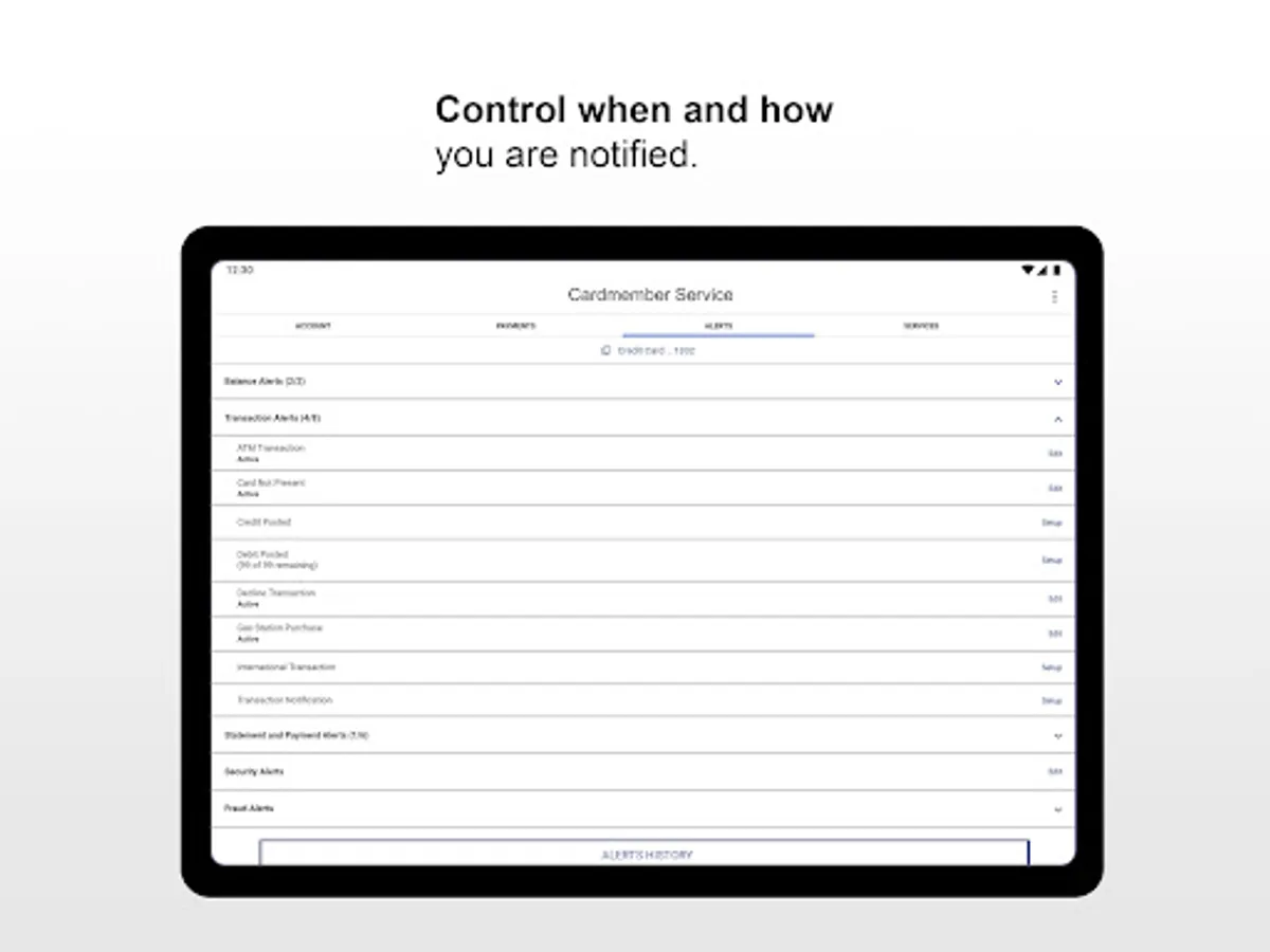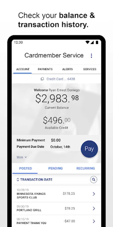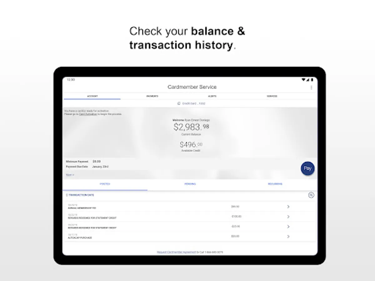 ‒ Review recent activity – View pending and posted transactions or search for specific transactions by date or amount.