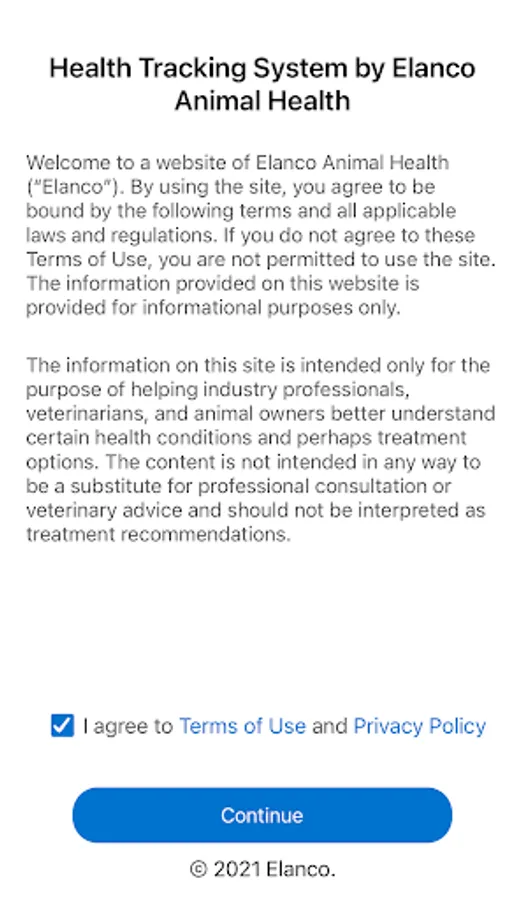 App user needs to connect with regional Elanco representative to get enrolled for the app in order to receive login credentials.