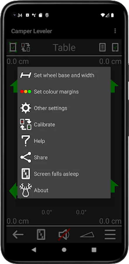 3. Click the Calibrate menu button (left top in the leveler screen) to open the Calibration menu 4. Click the Calibrate button 5. Be patient and do not touch the table or the phone / tablet while calibrating !!! 6. When completed, the app is calibrated for a flat surface like the table 7. Use the table in your motorhome (or the kitchen worktop) to level in your motorhome 8. When your motorhome is leveled, you can calibrate the app for other surfaces as well, even if that surface is not horizontal: the dashboard, a chair, the floor or any other surface. You do so by selecting the right surface in the app and clicking Calibrate again (note: can not be calibrated. shows the phone's default) You can undo the calibration for any selected surface by clicking the Undo button in the Calibration menu. Note: calibration is a correction added to the app only, there are no changes made to your phone! Some phones also require to calibrate the sensors in the phone or tablet. Please read your phone's manual on how to do that. ----------------------------------- Also see https://elandapps.com/ Need support? support@elandapps.com T-shirt or cap? https://elandapps.com/shirts-and-caps/#!/ |