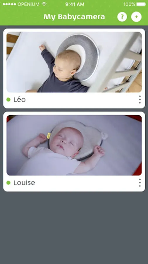 The free My Babycamera app connects easily with your Babymoov Babycamera 0% Emission.