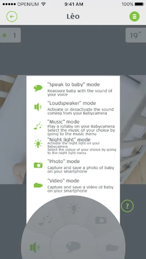 The app works only with the Babycamera 0% Emission. Instructions on using the app are described in the Babycamera 0% Emission instructions.