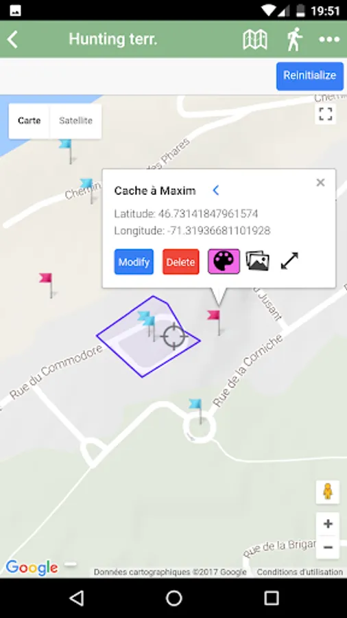 Hunting Territories: Draw your hunting territories directly on a satellite map, allowing you to position your various points of interest on the map so that you can see and analyze your hunting area at a glance.