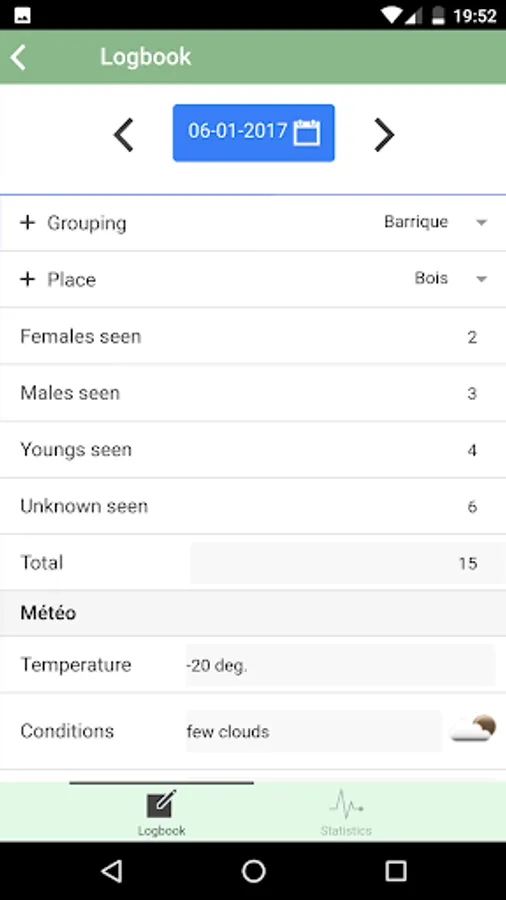 Document your hunting days in the "Hunting Log" section, allowing you to record behaviors and the number of games seen. The whole is grouped according to the weather of the moment and certain criteria that you will determine. In addition, statistics can be created according to the criteria you want to use as a graph.