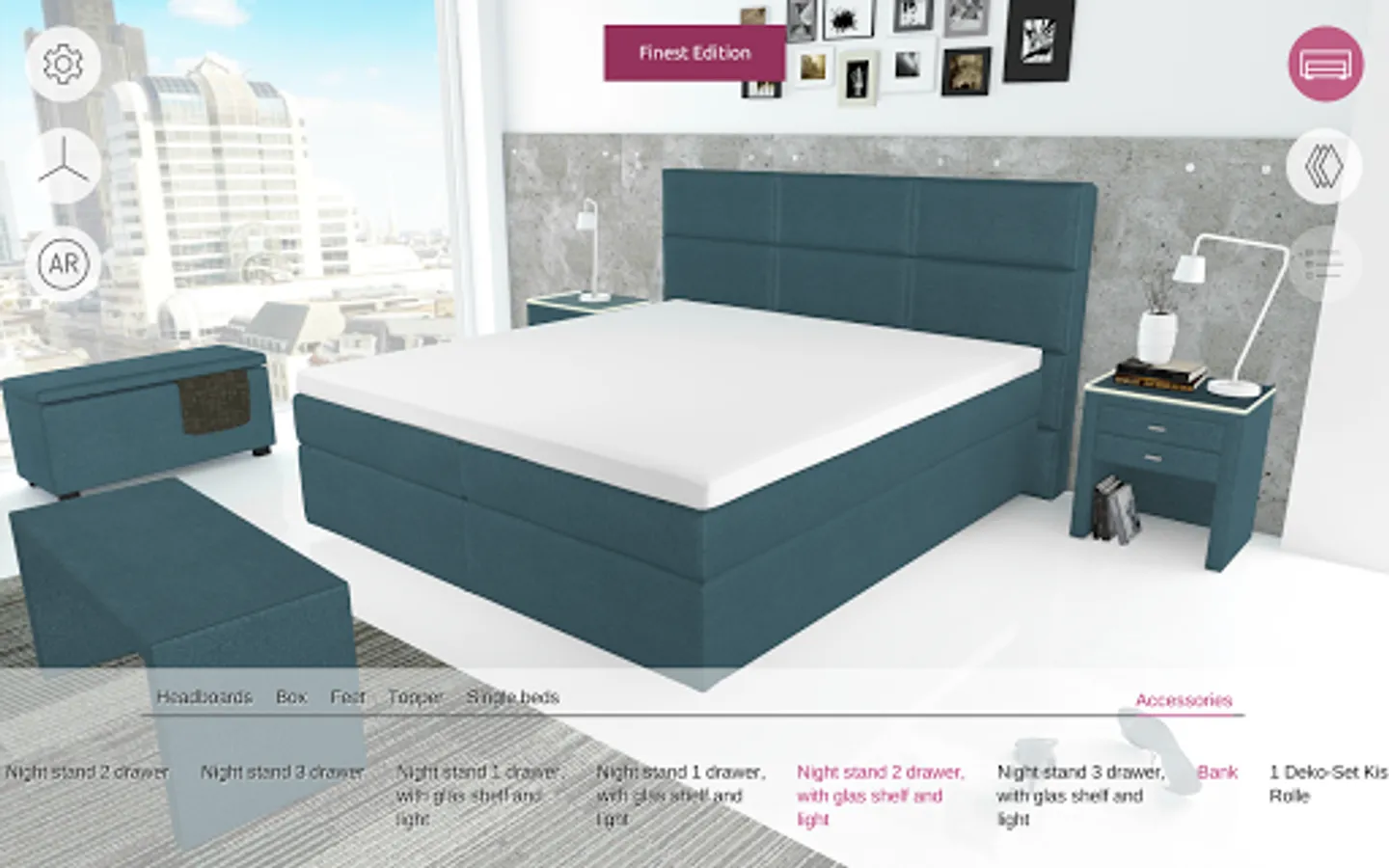 With the box spring configurator by FEY, one of the leading manufacturers of box spring beds, you can combine headboards with bases and mattresses at a whim. Choose suitable feet, play with the design and colour of the upholstery fabric until you find your dream bed.