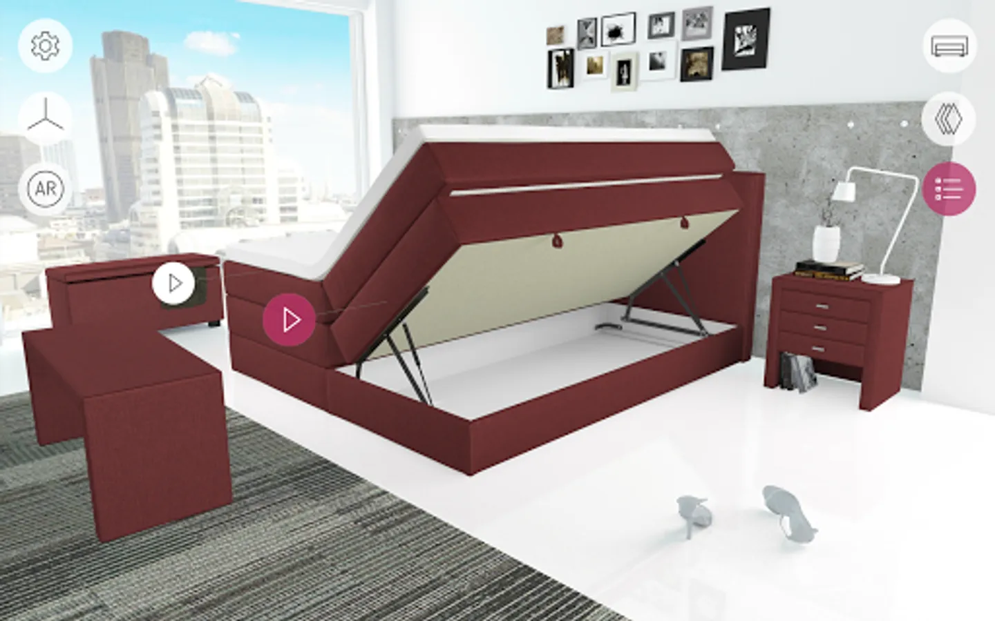Does this bed fit in my bedroom? Does it blend well with the floor, wall paper, curtains? Be the judge! Thanks to Augmented Reality, your dream bed will be presented as a flexible 3D model with virtual projection in front of the picture of your own four walls.