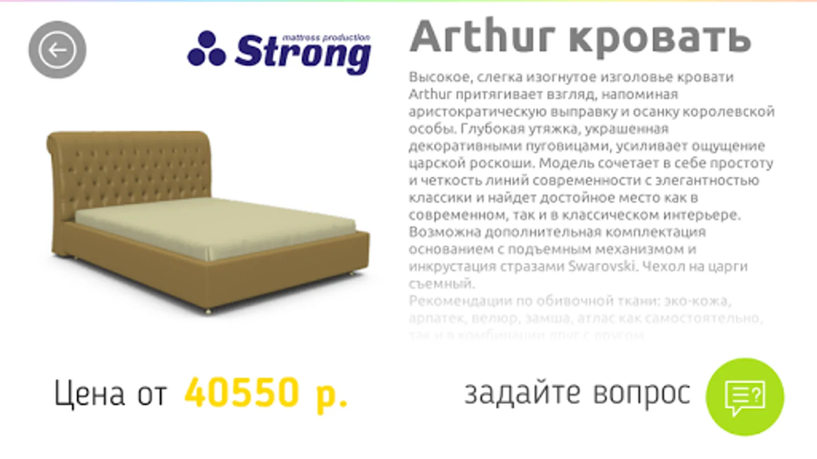 Appendix "Strong" - is the online catalog of beds and upholstered furniture accompanying with the light fitting before buying ...