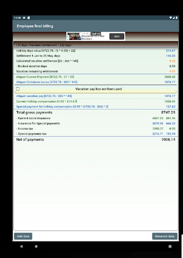 Final accounting takes care of everything for you, you only need to enter 4 entries, including the date of termination and the vacation you have taken and if vacation pay is widely paid or still due.