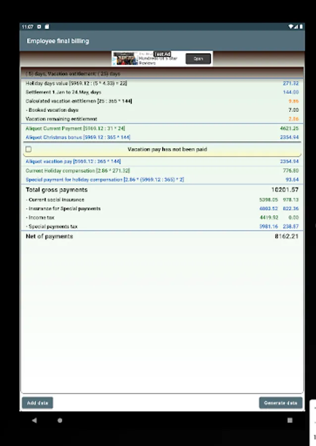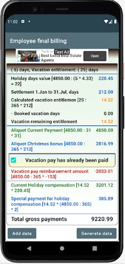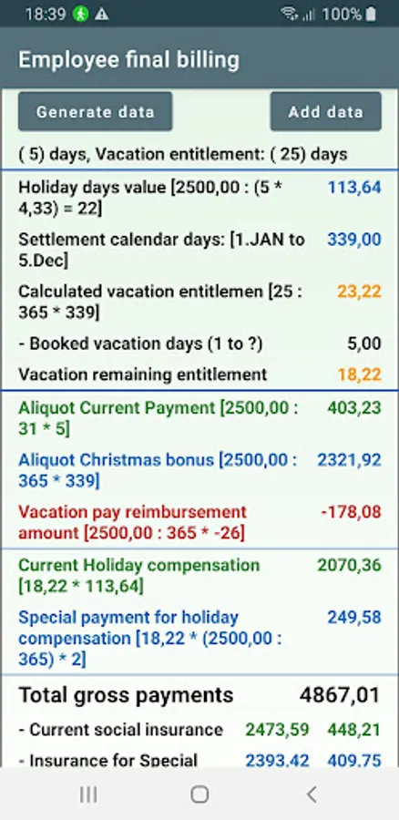 You have a more accurate statement for current payments, the special payments due and a calculation for your holiday compensation and the resulting special payments.