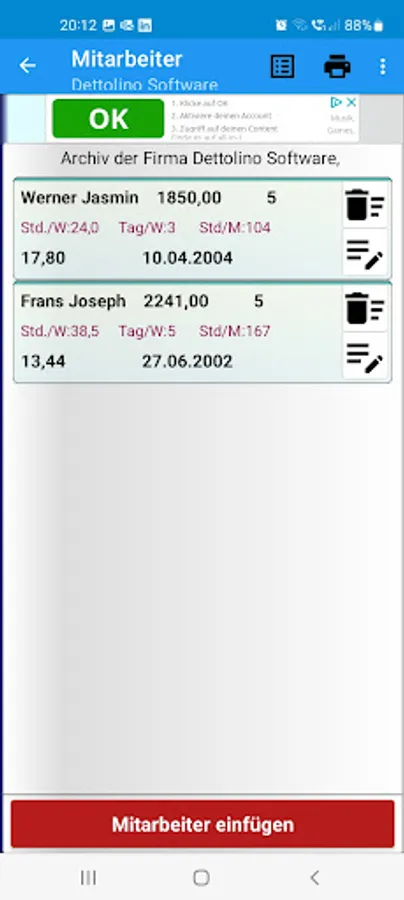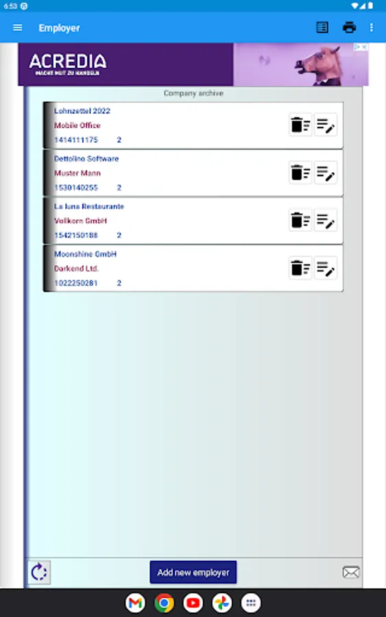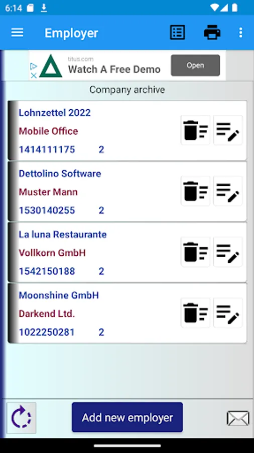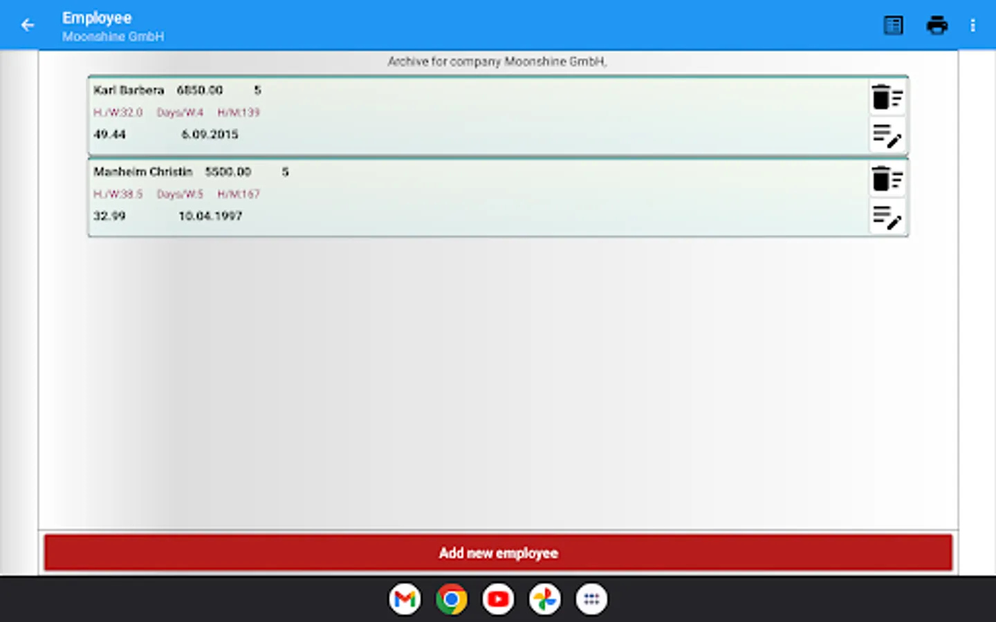 There are 4 companies that lead to the employee archive with a click. You can insert your own company and keep the most important data in the archive, you have the possibility to update your data at any time.