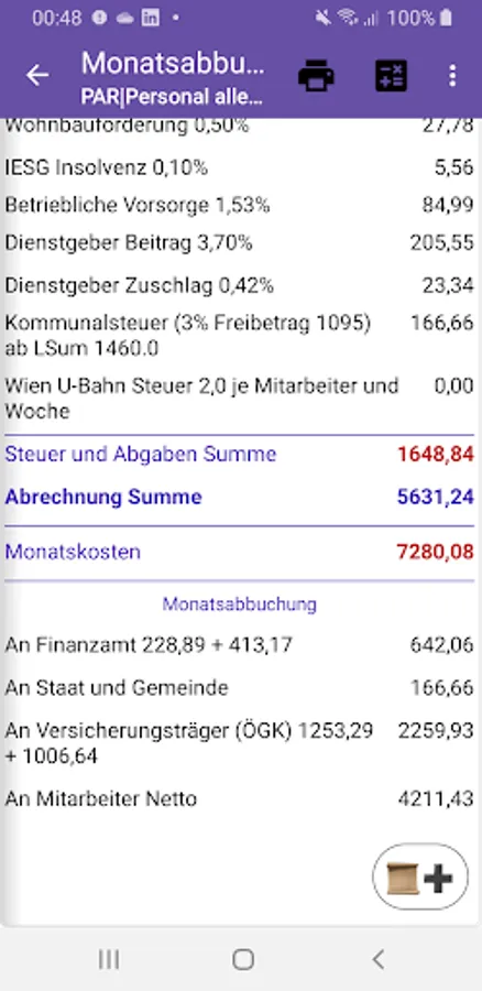 • Monthly transfer to the tax office, ÖGK and state and municipality cash desk.