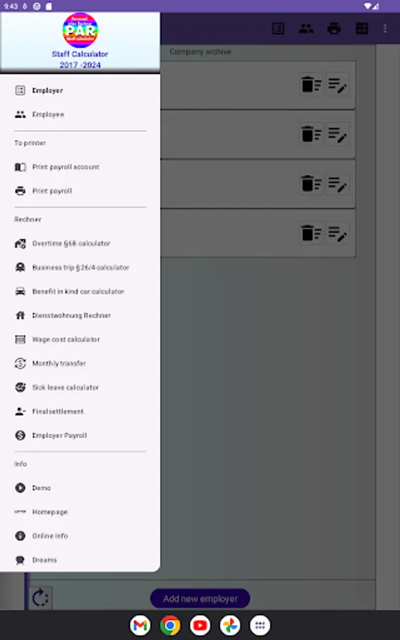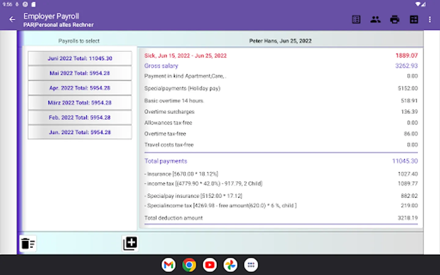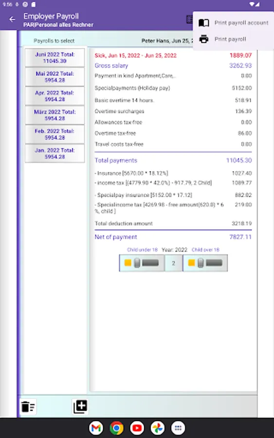 3. Personnel archives includes optional agreement for payment in kind, overtime lump sum (all-in contracts) and type of calculation for holiday and continued payment entitlements as well as number of children adjustment.