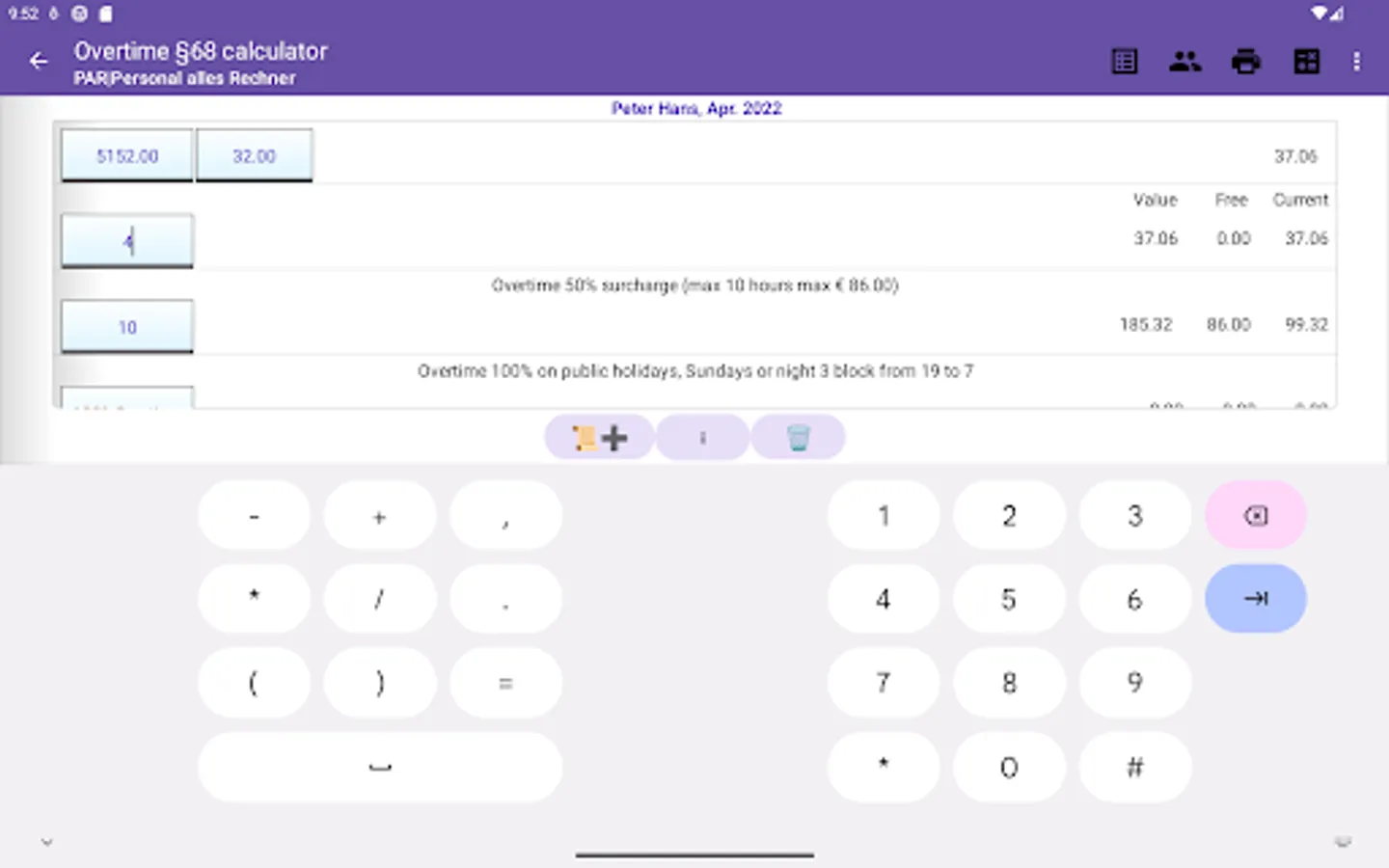 • Overtime §68 Calculator