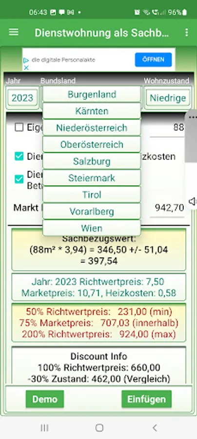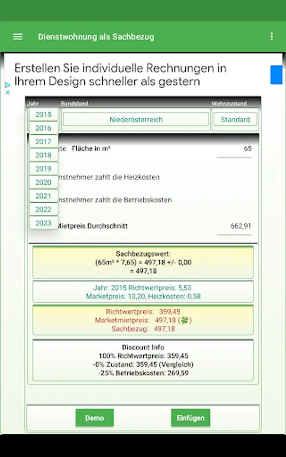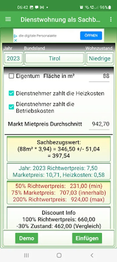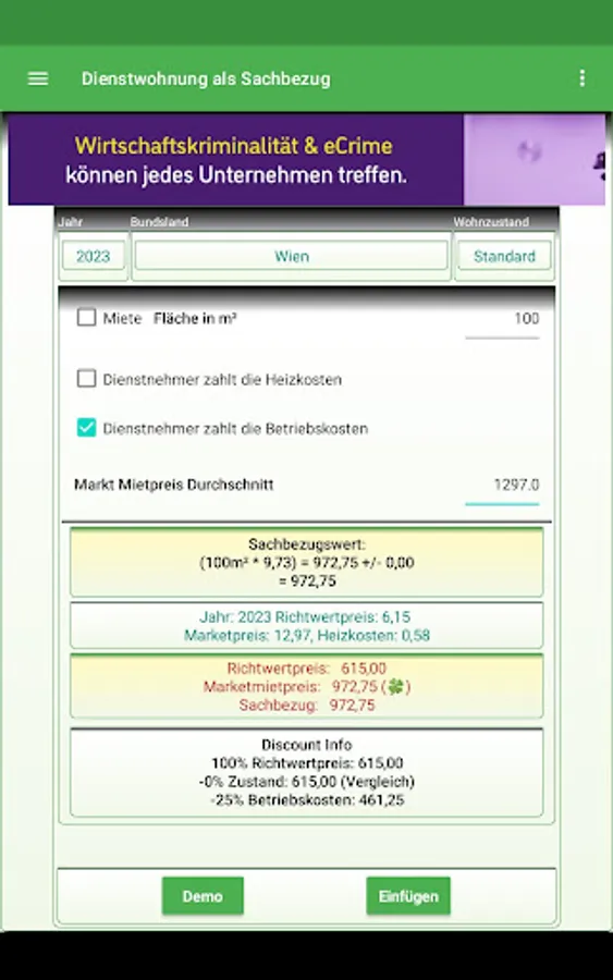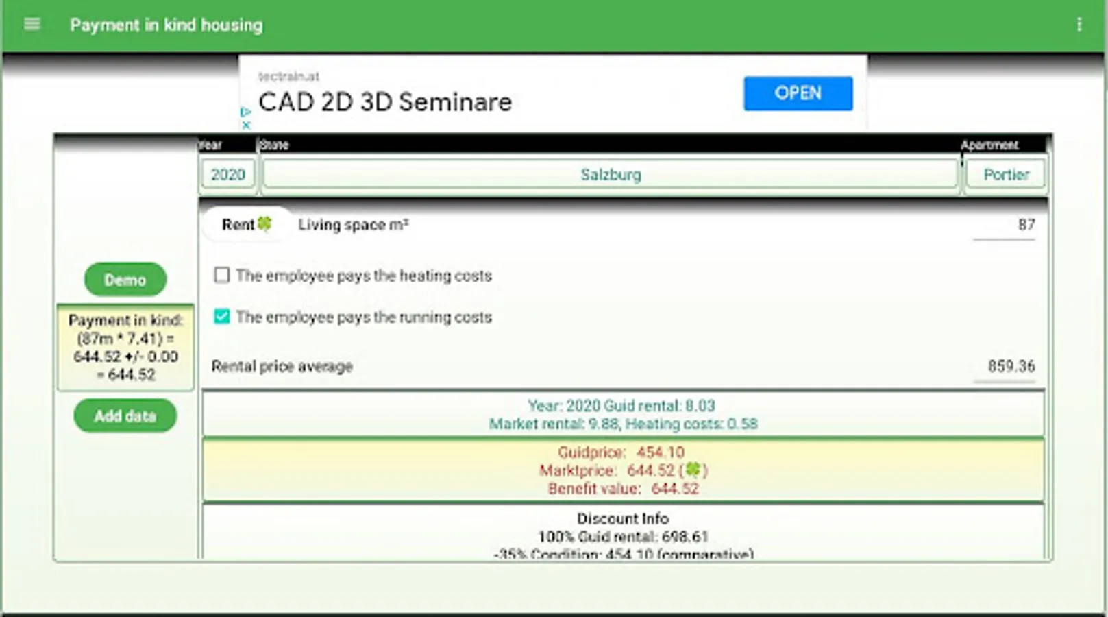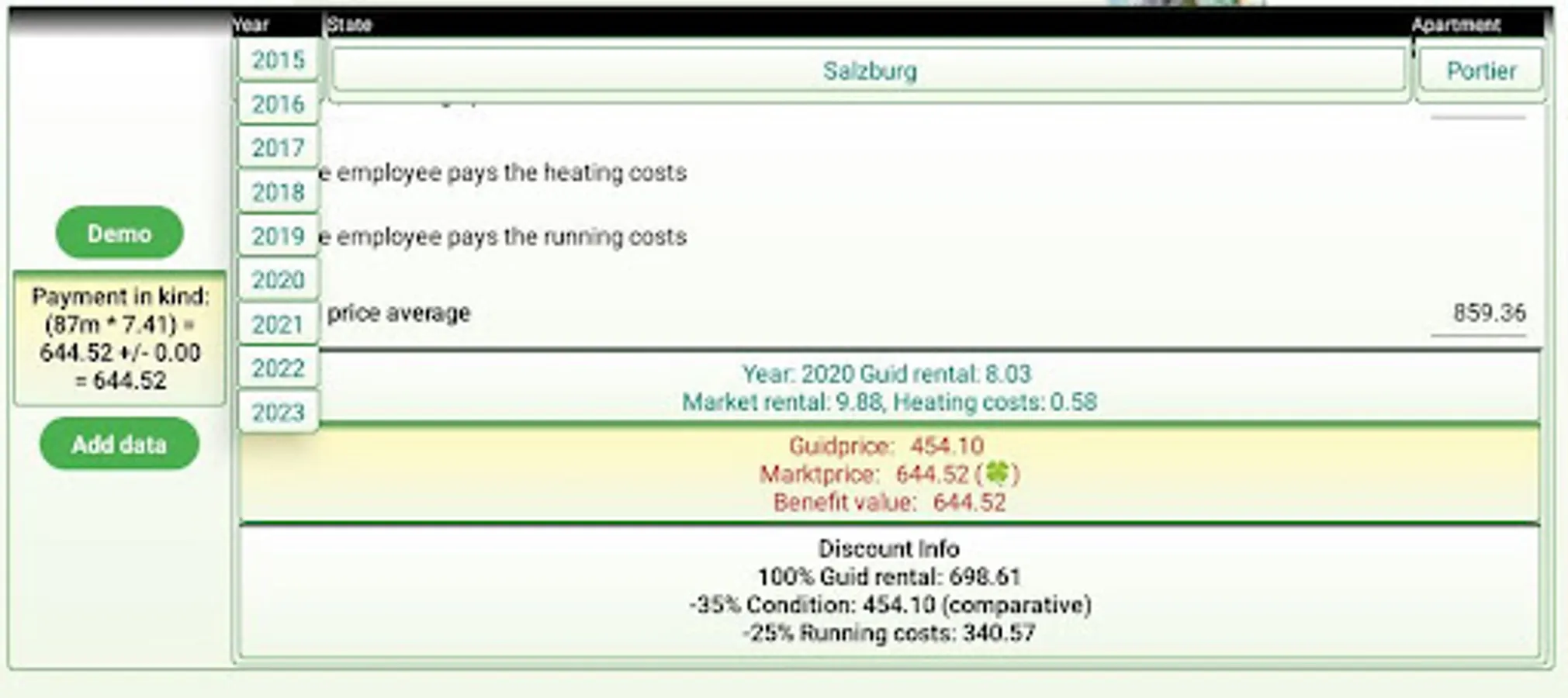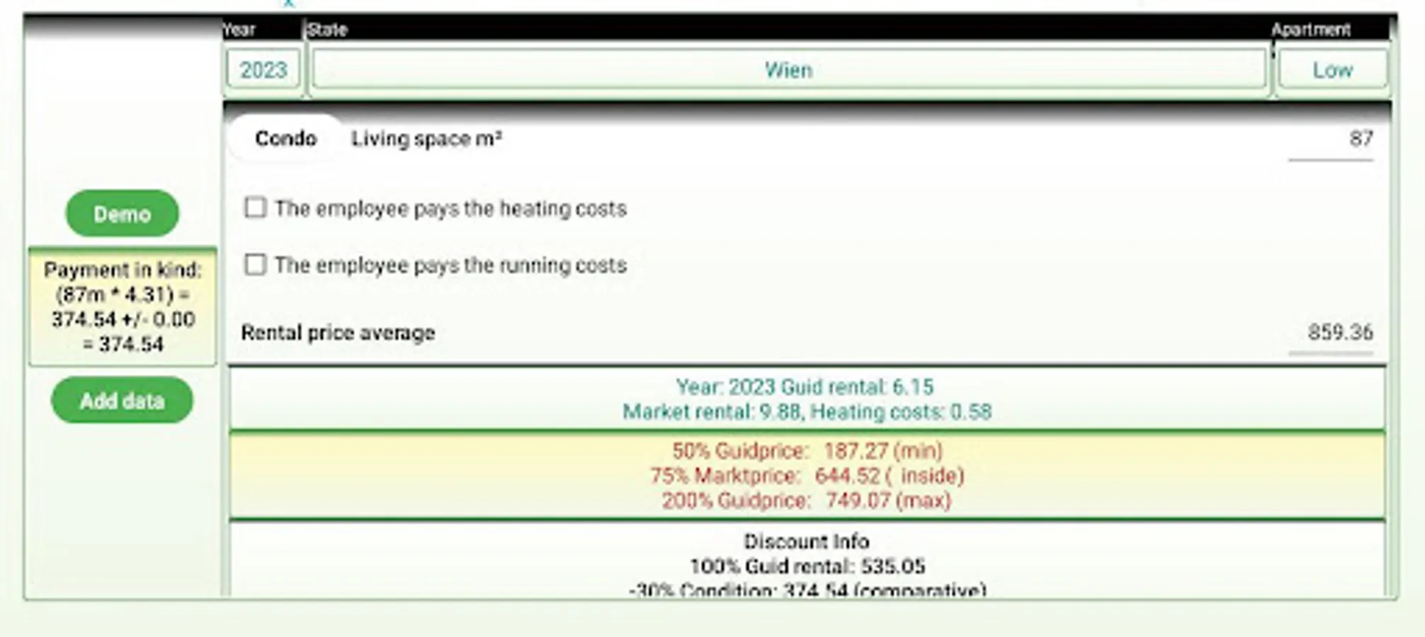 A calculation tool for assessing the benefit in kind for company housing in Austria