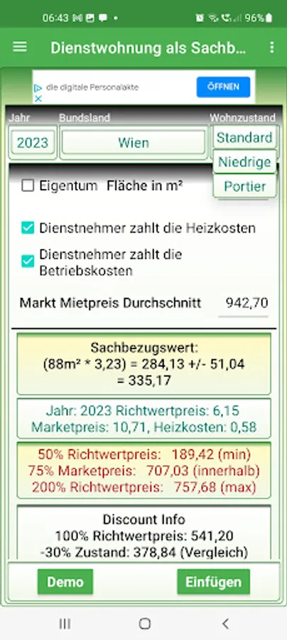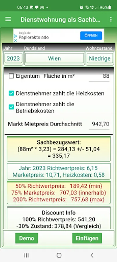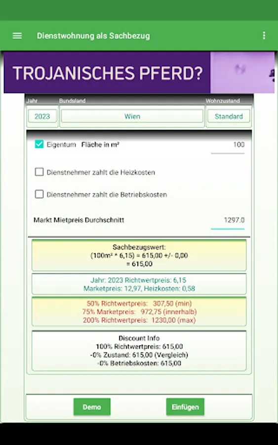 100 sqm official apartment in Vienna as a consumer, sqm average price is € 12.97 The benchmark law from 2021 is € 5.80 and no discounts, how do you value?