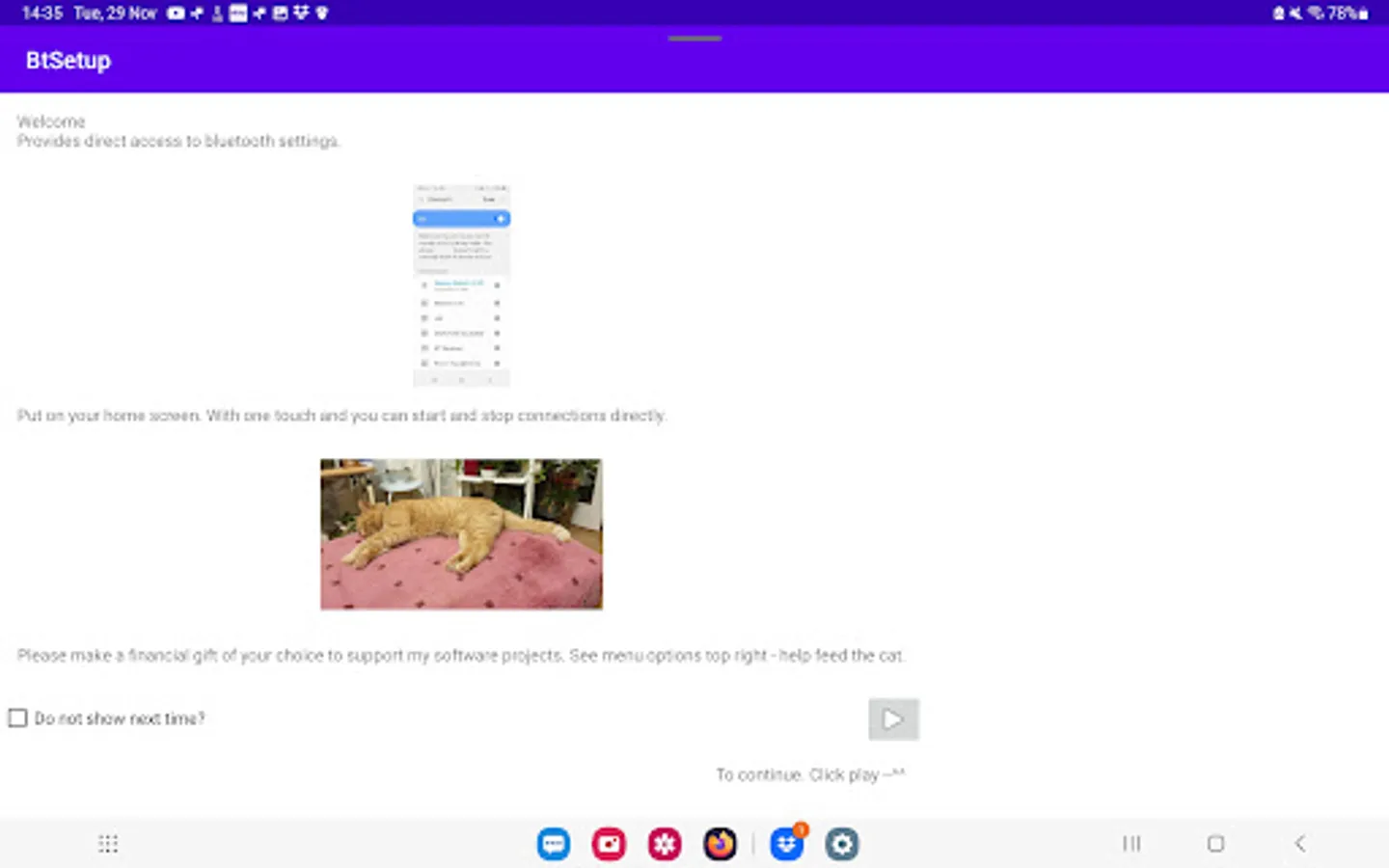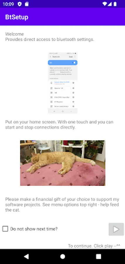 Put the application icon on your home screen and click to start and stop bluetooth connections.