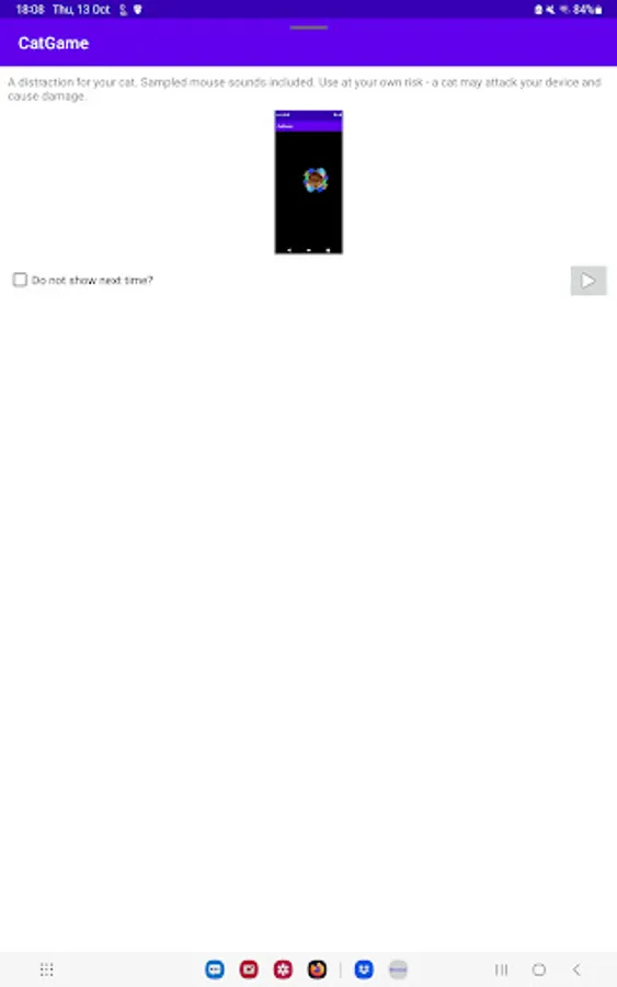 A distraction for your cat. Animated mouse images, and colours and mouse sounds included.