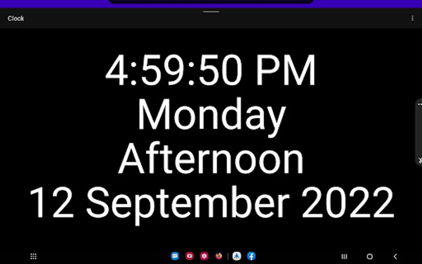 This is a simple clock with high contrast with clear display of numeric and named times, dates and days of the week that can help guide someone living with dementia or not to what time it is.