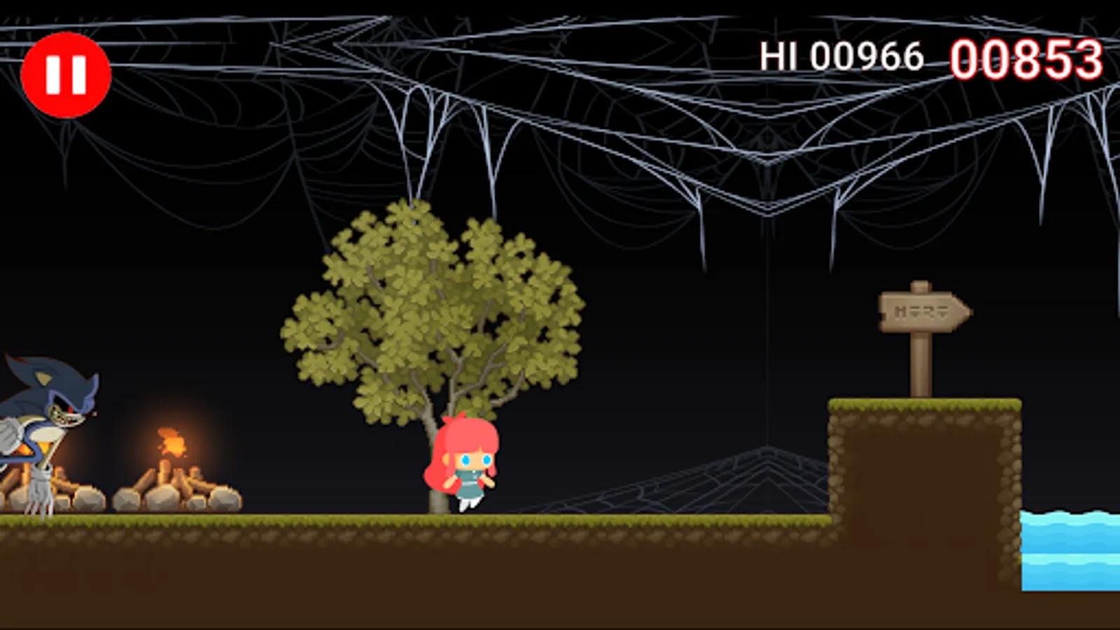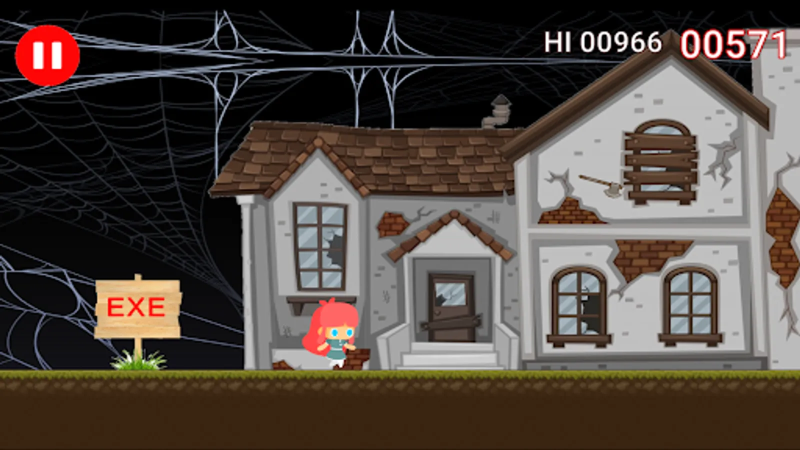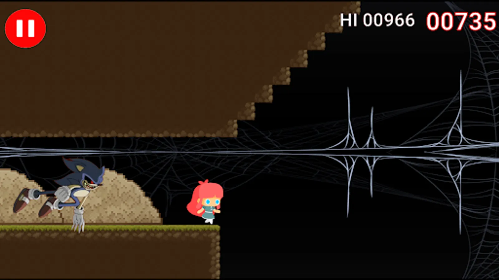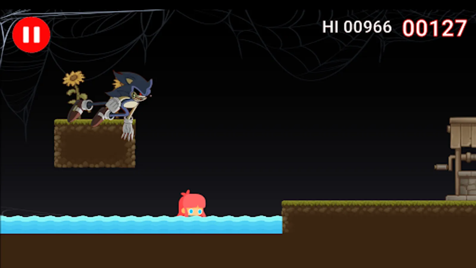 During the gameplay, the player continuously moves from left to right trying to avoid the oncoming obstacles. To jump you just have to press your finger on the screen. When Soniic exe reaches the player the game ends and you have to start over.