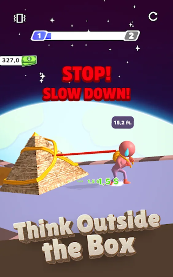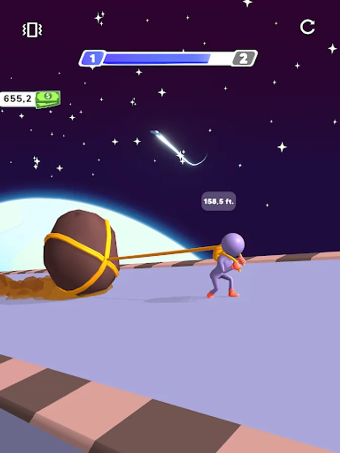 Our fearless hero has the tenacity and determination to carry a giant boulder and many other amazing things millions of kilometers. However, on this journey, he needs a helper who will improve his equipment and strength to help him strategically improve strength.