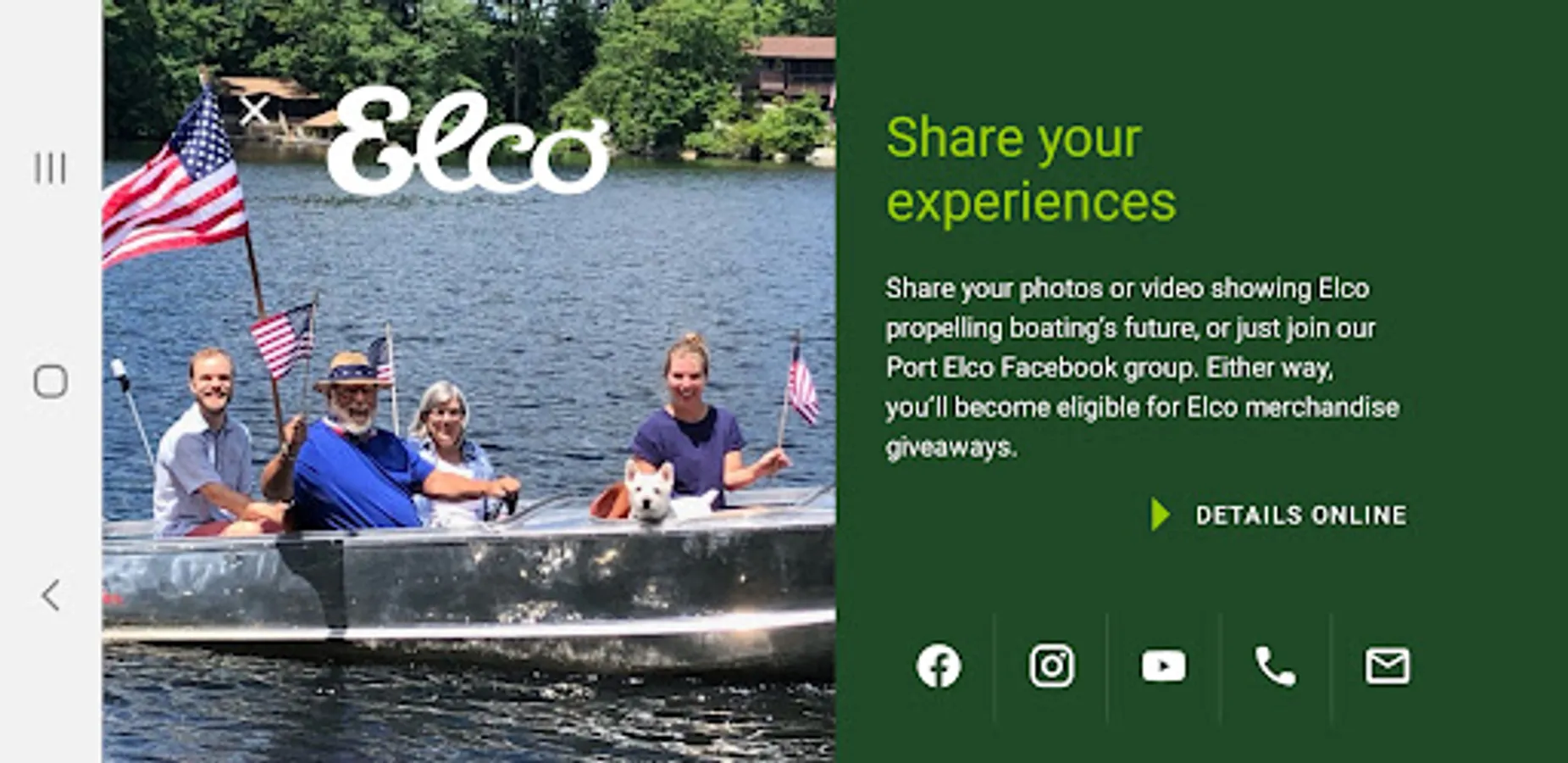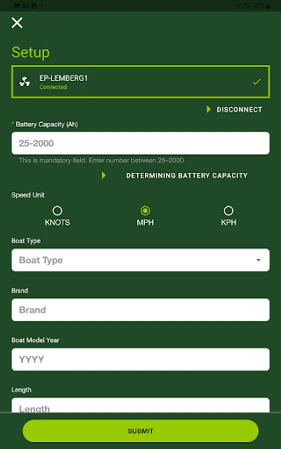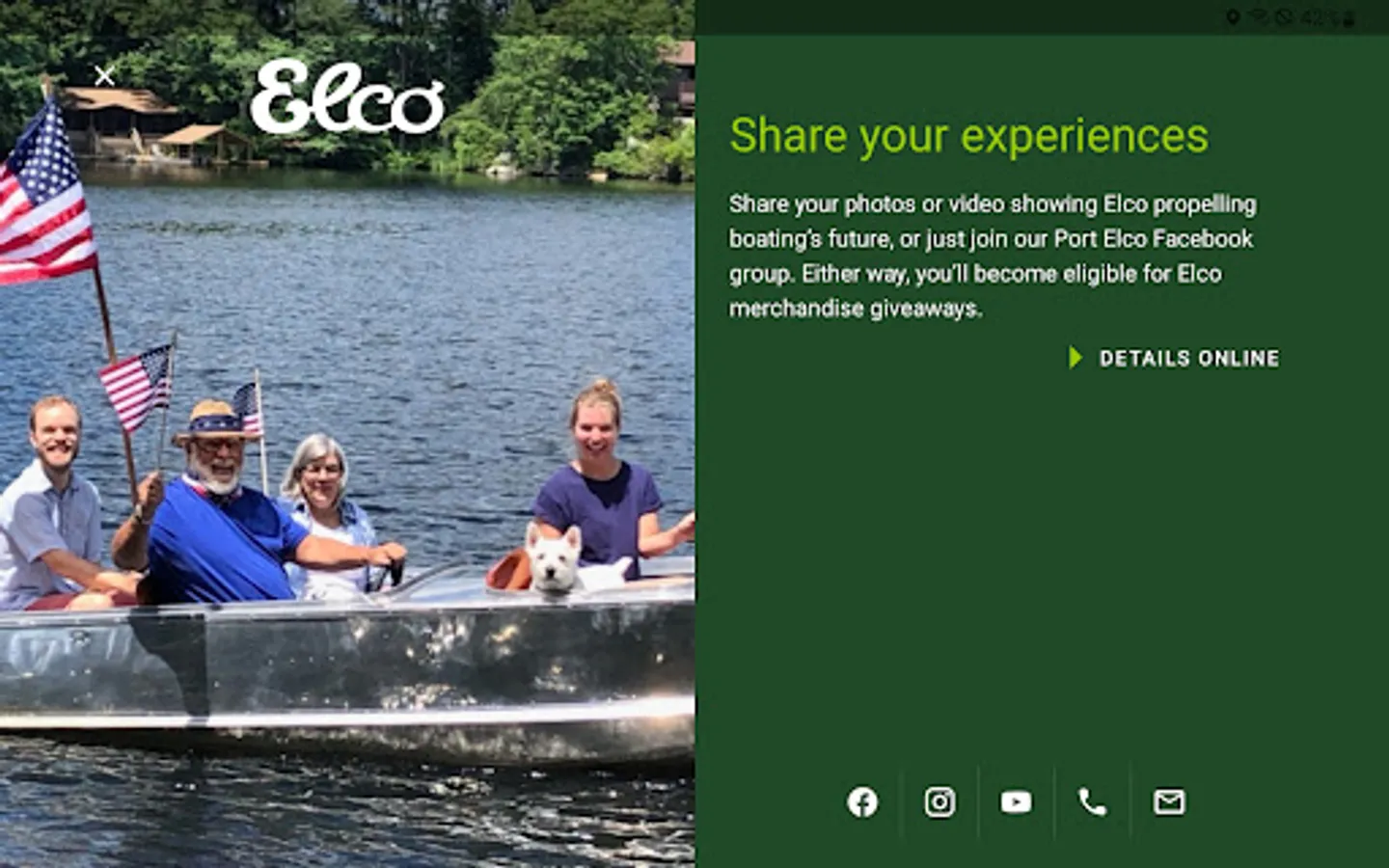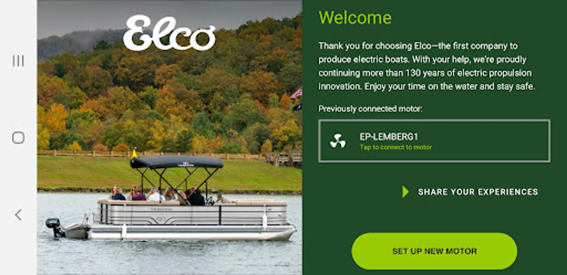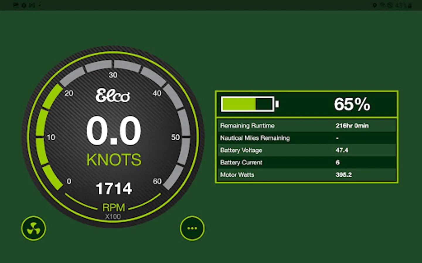 Our Elco companion app will allow you to get current boating speed, battery capacity and duration times, and more useful info while on the water.
