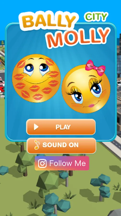 Bally - flying ball. Molly hidden in the city. Help him find his beloved in the big city.