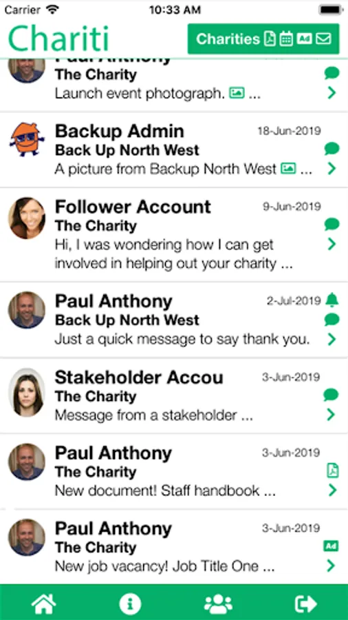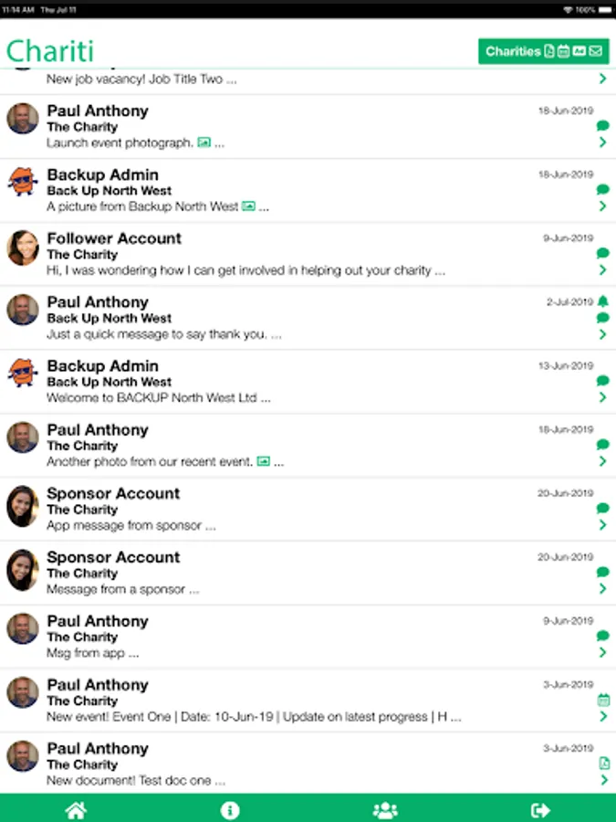Anyone with the Chariti app can find, follow and message your charity. Use the app to post updates, pictures, news, events and jobs to raise awareness for your organisation.