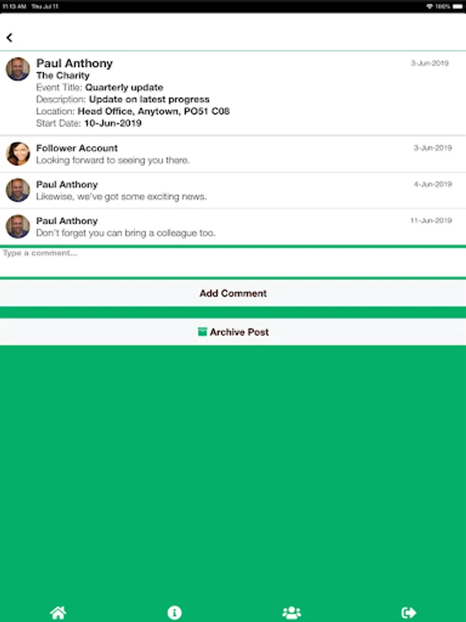 Keep your stakeholders up to date with posts and share specific information on your organisation.
