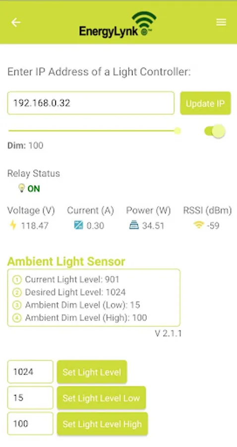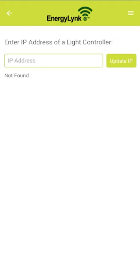 Once in range, enter the IP address of the light controller and then press on the Update IP button to load the corresponding information.