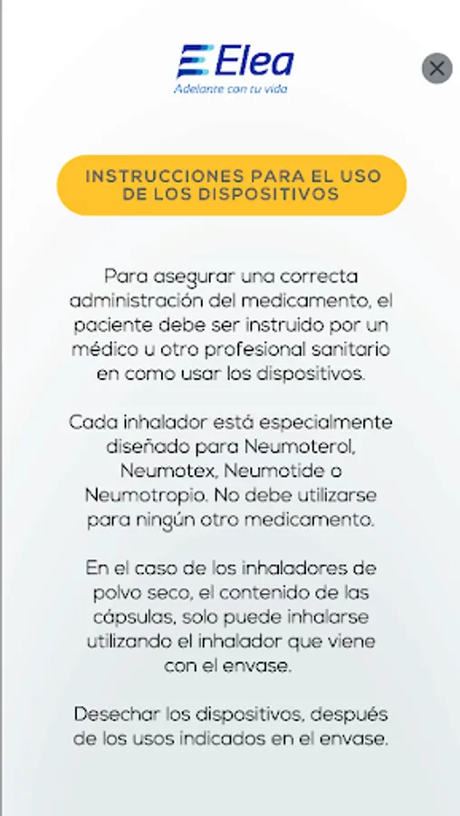 Explanatory videos on the use of inhaler devices for respiratory health products: Pneumotropium, Neumotex, Neumotide, Pneumoterol and Aerocamera. Elea Respiratory Line.