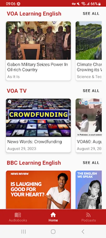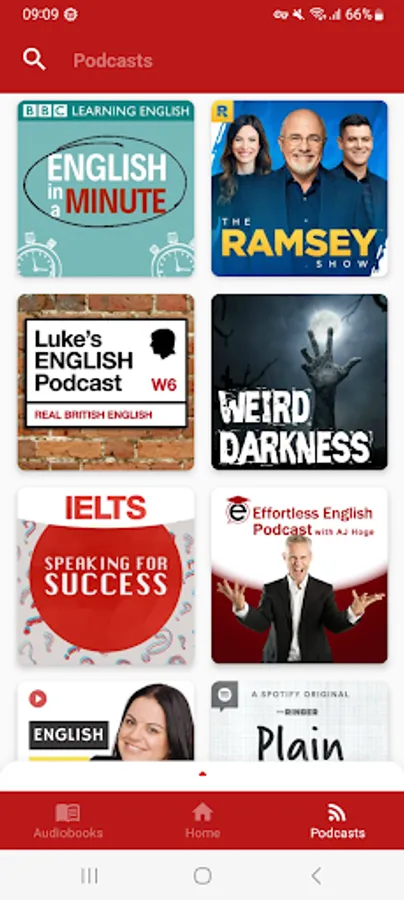 NPR TED Radio Hour, TED Business, IELTS Energy English 7+, Wait Wait... Don't Tell Me! , Spotlight English, Morning Edition, All Thing Considered, Fresh Air, Weekend Edition, Simple English News Daily, Living on Earth, All In The Mind, Spotlight English, Real English Conversations, The 100 Word Stories Podcast, Workplace English Podcast, 6 Minute Vocabulary, IELTS Energy English Podcast, English Across The Pond, Speak English Now Podcast, IELTS Made Easier, All Ears English Podcast, Business English Pod, Plain English Podcast, Casual English lessons, Better at English Podcast, Let's Master English!, Espresso English Podcast, The History of English Podcast, Luke's ENGLISH Podcast, Zapp! English Vocabulary and Pronunciation, Happy English Podcast, The Feel Good English Podcast, Storynory - Stories for Kids, Stories Podcast, ...