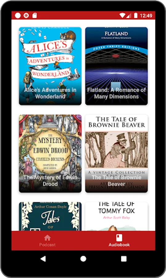 Pride and Prejudice, Moby Dick, The Adventures of Huckleberry Finn, Alice's Adventures in Wonderland, Aesop's Fables, The Adventures of Sherlock Holmes, The Art of War, Dracula, Our Island Story, The Odyssey, Romeo and Juliet, Walden, Poems Every Child Should Know, and thousands more.