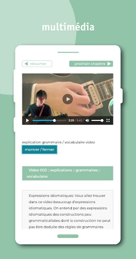 The application downloads a very complete course. Downloading and installing takes between five and eight minutes.