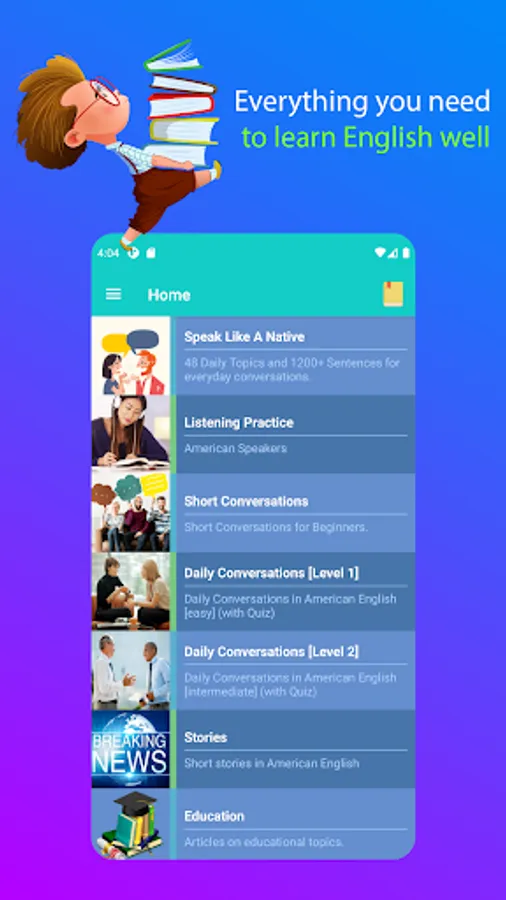 ★ Speak English Like A Native: 48 daily topics and 1200+ sentences for everyday conversations are helpful resources to help you learn to speak English easily.