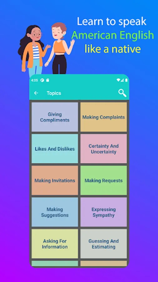 ★ Vocabulary learning: Thousands of words are divided into many topics with standard American English pronunciation that will help you memorize easily and effectively.
