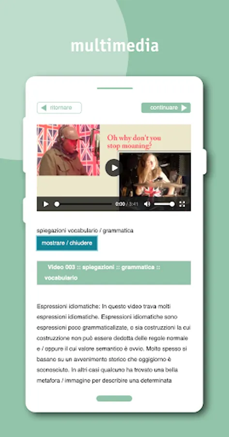 Grammar has a bad reputation, partly due to the fact that it is reduced to sentences and rules that should be easy to memorize. Actually, a more detailed explanation is easier to understand. As far as possible, this grammar follows a contrastive approach, which means that English grammar is explained starting from Italian grammar. You can learn, for example, by heart that the present perfect continuous is used when an action started in the past and continues in the present, but you can also, and this is easier to memorize and understand, the use of this tempo comparing it with an Italian verbal periphrasis that has the same meaning.