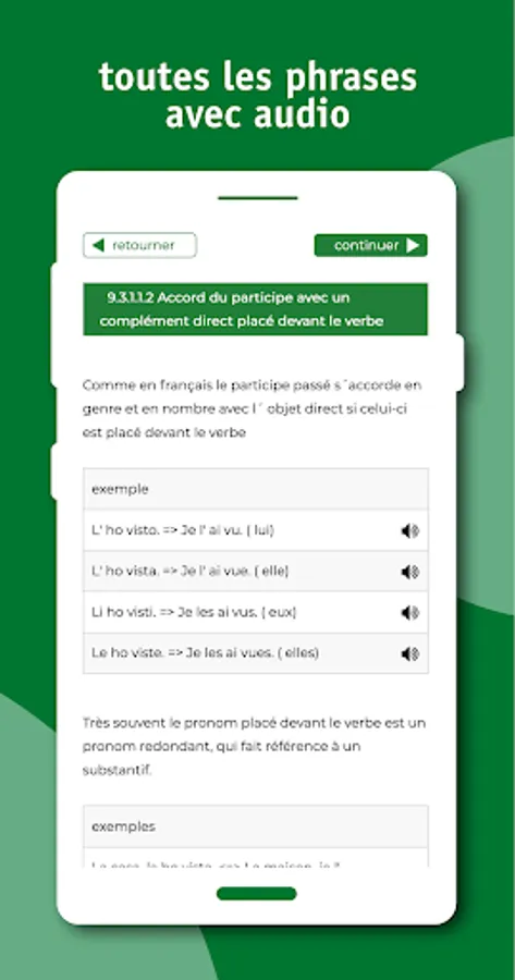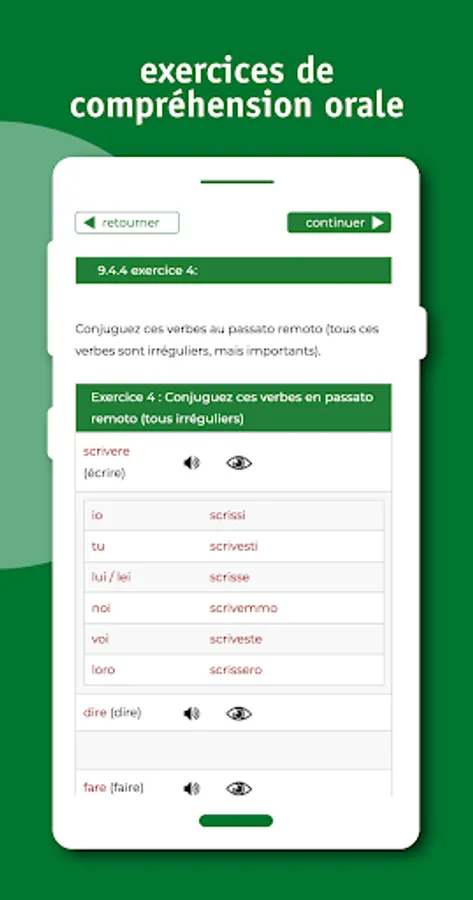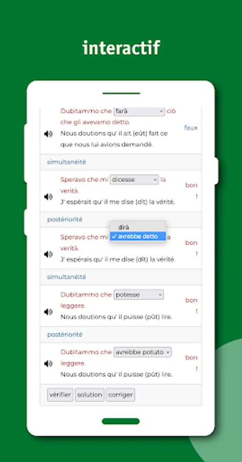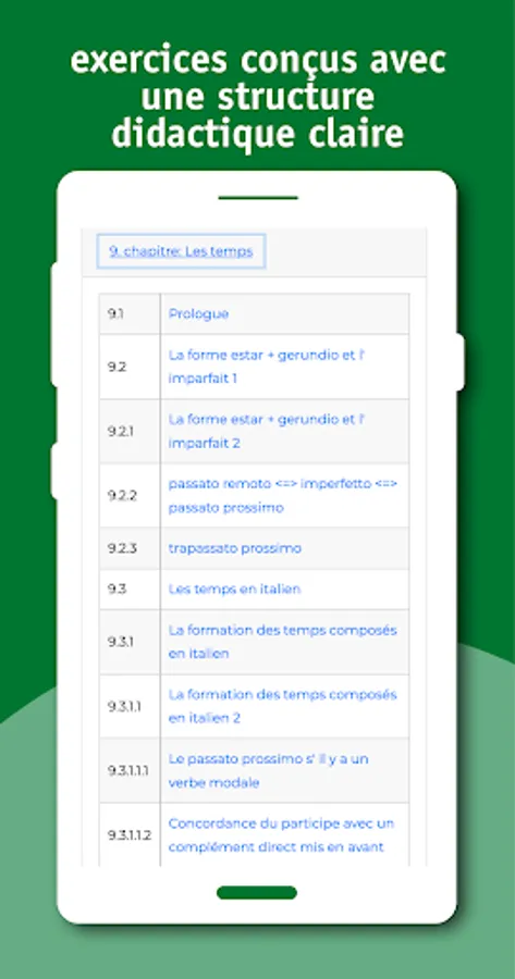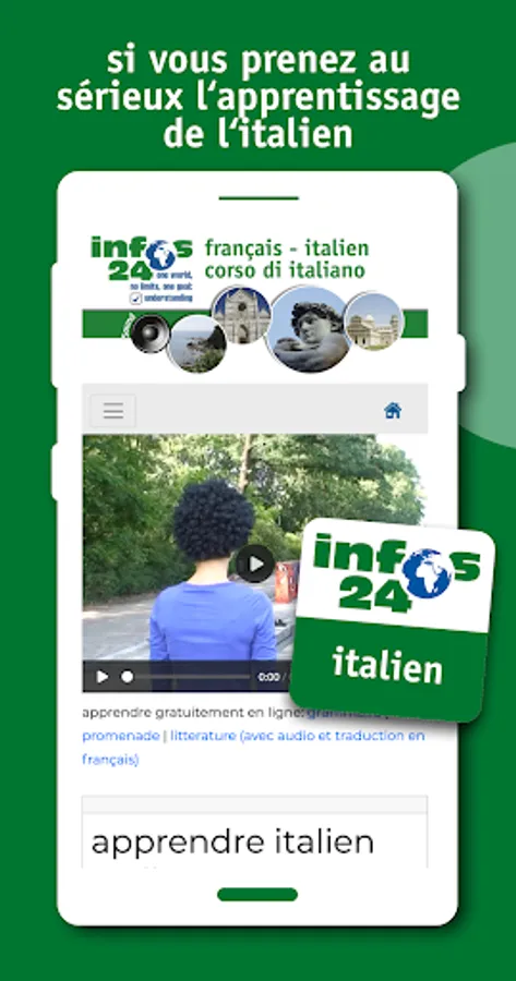 The grammatical part is contrastive. This means that the specific problems that French speakers face when learning Italian are taken into account. 600 grammar pages with several thousand sample sentences with audio and translation, 4,000 interactive exercises, several important novels with translation and audio, virtual walks, multimedia.