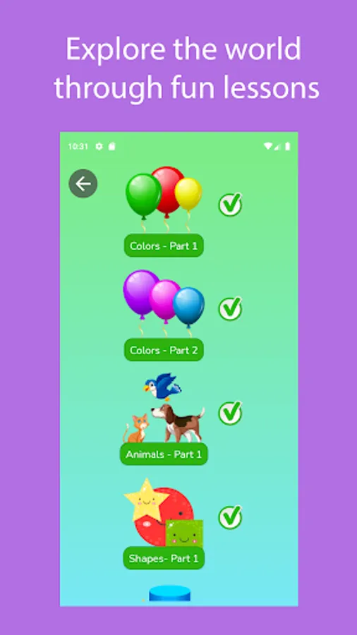 + Topics: Colors, Animals, Fruits, Food, Shapes, Insects, Clothes, Nature, Clothes, Vehicle, Appliances, etc.