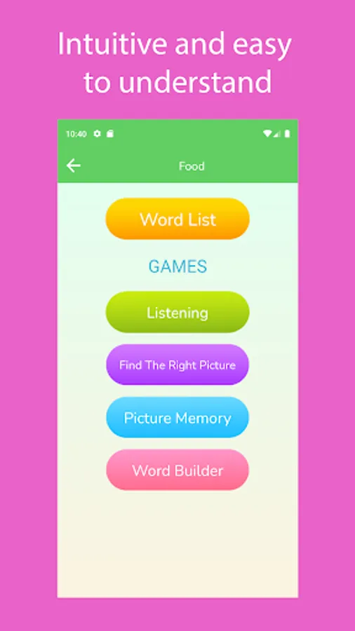 + Word Game: improve spelling ability by building the word from single letters.