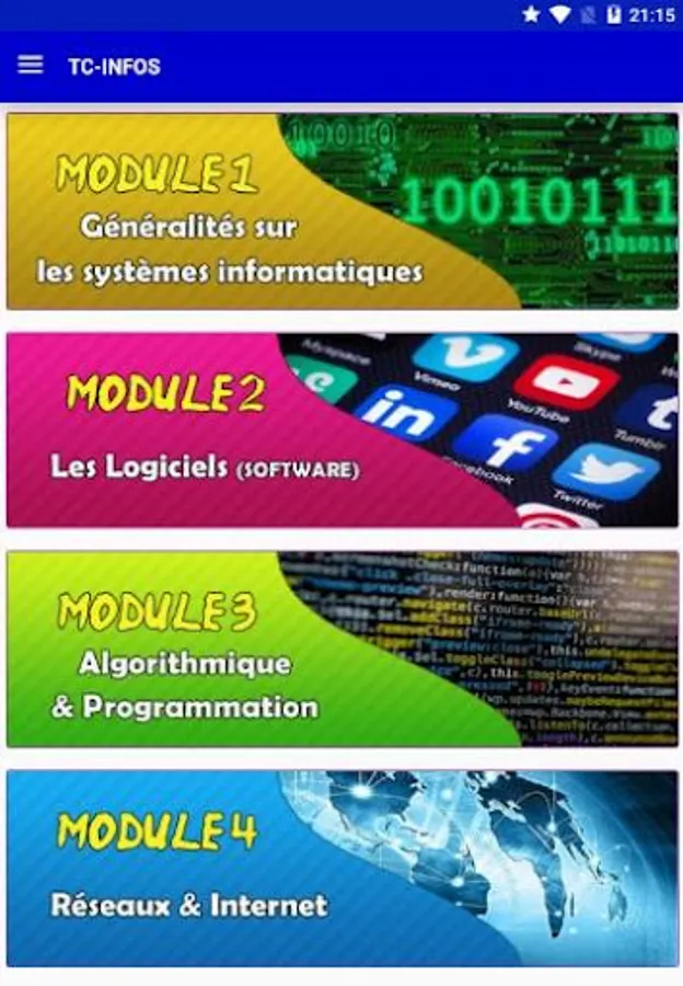 On vous propose dans cette application les cours d'informatique pour les classes de Tronc Commun Marocain.